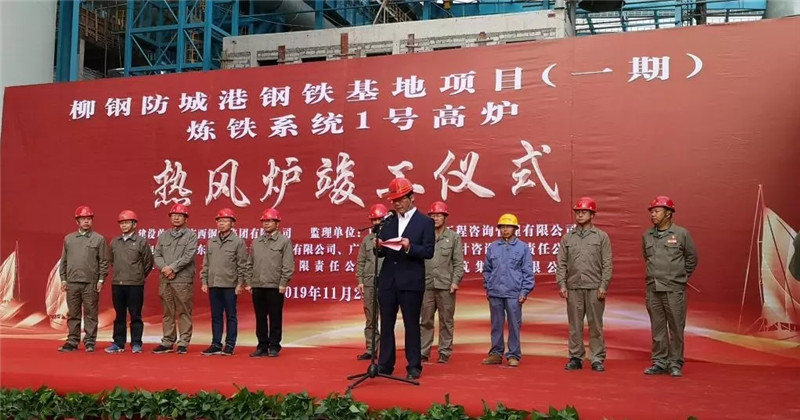 20191129日,柳鋼防城港鋼鐵基地?zé)掕F系統(tǒng)1#高爐熱風(fēng)爐舉行竣工儀式。山冶設(shè)計(jì)董事長(zhǎng)魏新民、副總經(jīng)理宋志順出席了竣工儀式,同時(shí)出席竣工儀式的還有柳鋼集團(tuán)總經(jīng)理甘貴平,柳鋼集團(tuán)副總經(jīng)理、廣西鋼鐵黨委書記、董事長(zhǎng)閻駿,廣西華銳鋼鐵工程設(shè)計(jì)咨詢有限責(zé)任公司副總經(jīng)理、總工程師吳建霖,十一冶建設(shè)集團(tuán)有限責(zé)任公司總經(jīng)理何權(quán)等相關(guān)人員。