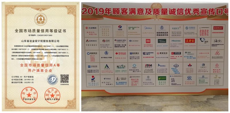 此稱號是在全國范圍內,經公開、公正、嚴格的第三方調查及省、國家兩級評審單位評選產生的。公司提出并倡導的服務口號,在全國上千家企業(yè)中脫穎而出,入選中國質量協(xié)會、全國用戶委員會2019“滿意中國年會”優(yōu)秀宣傳口號,并在眾多新聞媒體上進行了公開展示,進一步提升了山冶設計的品牌形象。