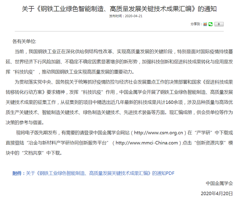 2019年10月23日,中國(guó)金屬學(xué)會(huì)下發(fā)了《關(guān)于征集鋼鐵冶金行業(yè)關(guān)鍵共性技術(shù)的通知》(金字[2019]147號(hào)),開展2019-2020年度鋼鐵冶金行業(yè)關(guān)鍵共性技術(shù)的征集和發(fā)布工作。根據(jù)公司領(lǐng)導(dǎo)的部署,科技部訊速組織協(xié)調(diào)各專業(yè)部門準(zhǔn)備申報(bào)材料,最終申報(bào)了焦化、煉鐵、軋鋼等專業(yè)的5項(xiàng)技術(shù)。