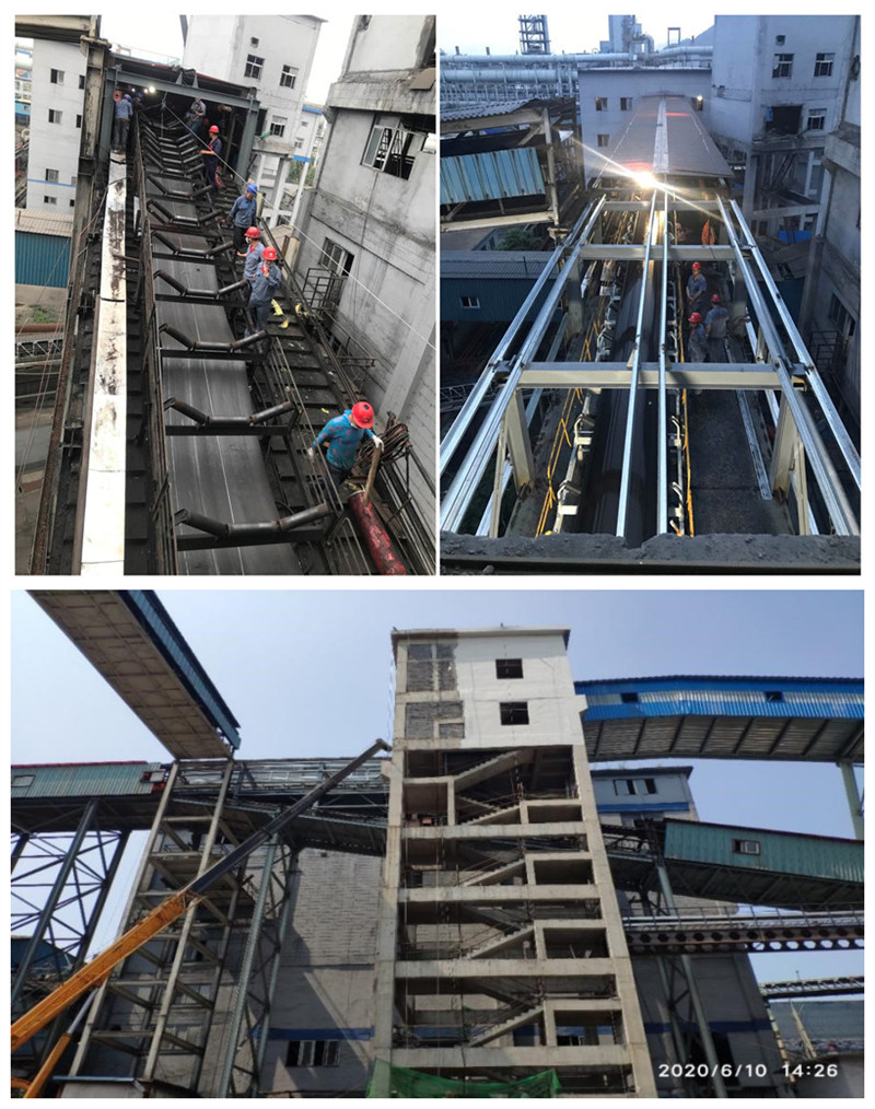 至新區(qū)7、8號焦爐輸煤生產(chǎn)線是焦化筒倉一期一步工程施工難度最大的一條生產(chǎn)線,新建3個轉(zhuǎn)運站、2條皮帶通廊、改造1條皮帶通廊,全長400多米。皮帶通廊即有半地下鋼筋混凝土結(jié)構(gòu)也有架空鋼結(jié)構(gòu),架空部分緊靠鐵路及高落差護坡,與生產(chǎn)嚴重交叉,組織施工及吊裝難度極大。項目部各專業(yè)人員積極配合,協(xié)調(diào)各施工單位,分段作業(yè),由于組織得力,各專業(yè)銜接緊密、配合緊張有序,土建積極給鋼結(jié)構(gòu)、鋼結(jié)構(gòu)積極為機裝、機裝積極為電裝及后工序創(chuàng)造條件,特別是最后三天,鋼結(jié)構(gòu)收尾、支架及皮帶安裝、單機調(diào)試、設(shè)備運行調(diào)整、舊皮帶通廊改造、新舊系統(tǒng)聯(lián)動控制調(diào)試、照明報警及語音系統(tǒng)安裝調(diào)試,時間緊任務(wù)重施工難責任大,現(xiàn)場各類施工人員多,項目部人員靠現(xiàn)場,緊抓安全,積極協(xié)調(diào),最終克服了各種困難,最終超額提前圓滿完成任務(wù)。