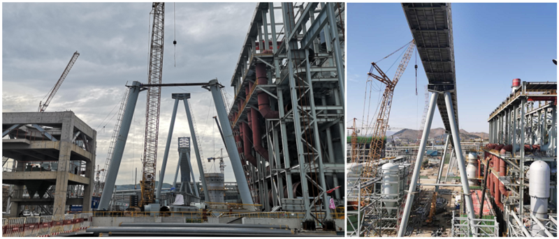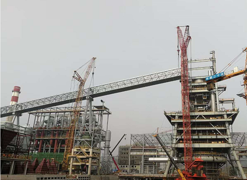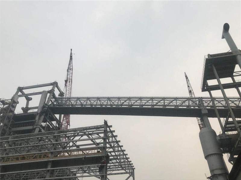 5#通廊在4000噸米塔吊和350噸履帶吊相互合力下,經(jīng)過(guò)近6個(gè)小時(shí)的吊裝,順利達(dá)到68.90米就位高度,按計(jì)劃節(jié)點(diǎn)提前7天完成高爐主皮帶通廊的整體鋼結(jié)構(gòu)安裝。這是萊鋼1#3800m3高爐本體工程中吊裝高度最高、單體重量最重、跨度最大的鋼結(jié)構(gòu)件,5號(hào)通廊成功安裝,為后續(xù)設(shè)備安裝、通廊封閉、設(shè)備單機(jī)調(diào)試等創(chuàng)造了有利條件,同時(shí)給其他各參建單位做了號(hào)的榜樣,便于帶動(dòng)其他工序積極作業(yè)施工。