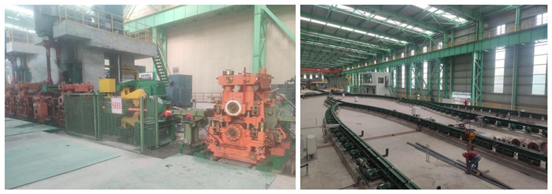 龍騰特鋼高速端板法蘭生產(chǎn)線是國內(nèi)采用全連軋工藝生產(chǎn)的高速端板法蘭軋鋼生產(chǎn)線,產(chǎn)品涵蓋國內(nèi)外端板法蘭的絕大部分規(guī)格要求。通過雙蓄熱步進式加熱爐加熱后,鋼坯進入11臺平立交替布置的高剛度短應力線軋機,實現(xiàn)全連續(xù)無扭軋制。通過我院專利設備浮動式夾送輥和平立轉換裝置,不同規(guī)格的端板法蘭扁鋼可在軋制完成后實現(xiàn)快速平轉立,并通過轉轍器及卷前輥道分別輸送至6臺卷取機進行卷取。生產(chǎn)線配備先進的自動控制系統(tǒng),對全線物流進行跟蹤,實現(xiàn)工藝過程的自動化。先進的設備與合理的工藝流程,大大提高了生產(chǎn)線的生產(chǎn)效率和成材率,預計年產(chǎn)量可達50萬噸。