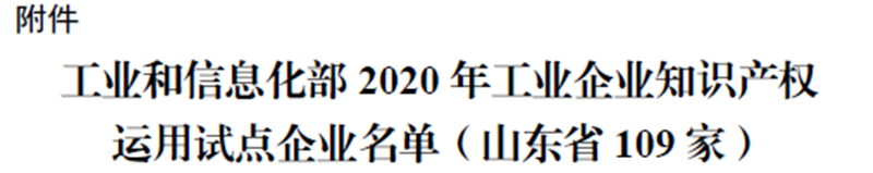日前,國(guó)家工業(yè)和信息化部辦公廳發(fā)文公布,公司成功入選“2020年工業(yè)企業(yè)知識(shí)產(chǎn)權(quán)運(yùn)用試點(diǎn)單位”,山東省共入選109家知識(shí)產(chǎn)權(quán)運(yùn)用優(yōu)秀企業(yè)。