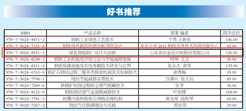 冶金工業(yè)出版社、世界金屬導(dǎo)報社等面向全國讀者推薦了我公司編著的《綠色智能鋼廠設(shè)計與創(chuàng)新》。
