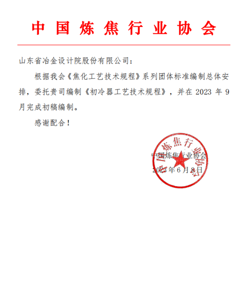 6月8日,我公司收到中國煉焦行業(yè)協(xié)會(以下簡稱“中焦協(xié)”)下達《焦化工藝技術規(guī)程》系列團體標準編制總體安排的通知,委托我公司化工事業(yè)部起草《初冷器工藝技術規(guī)程》。