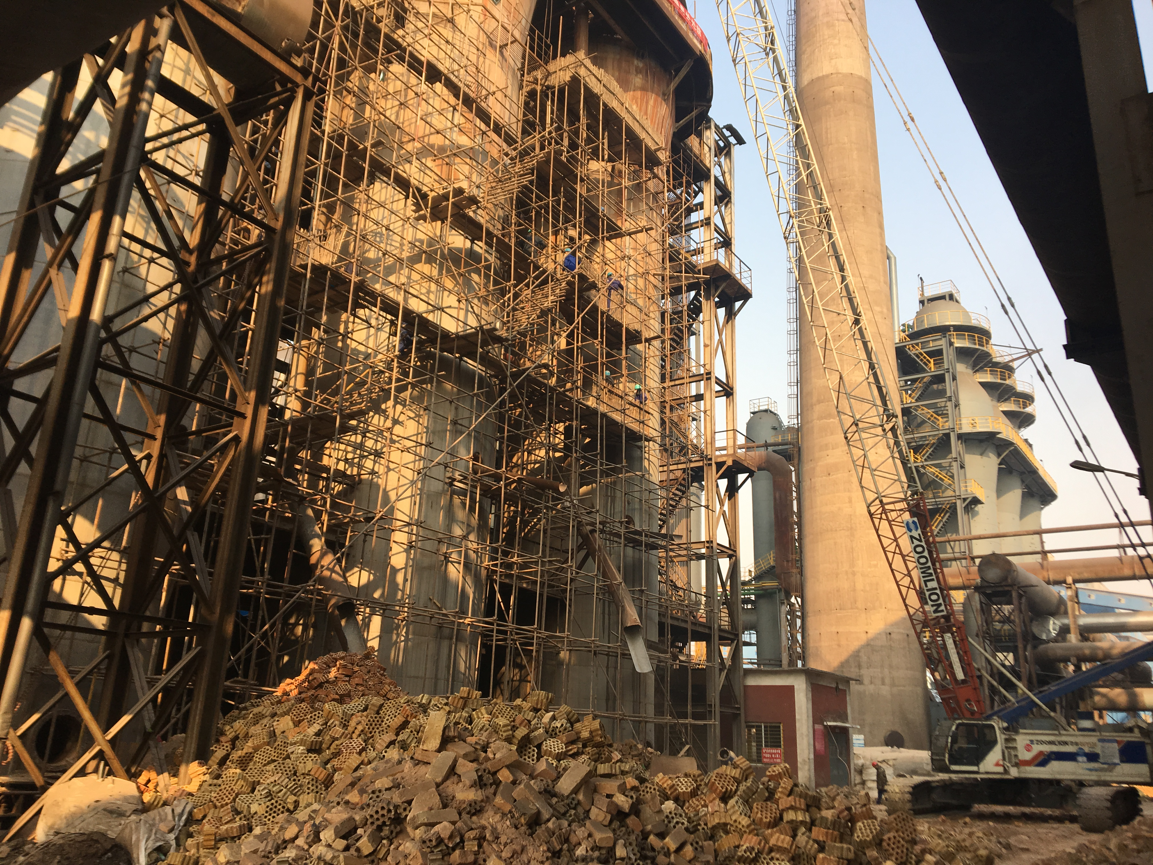 此項目自2019年1月11日停爐開始改造,先拆除,后新建,現(xiàn)場復雜,工期緊,工程量大。先后拆除耐材3000余噸,鋼結構設備拆除500噸,新砌筑耐材3400噸,新建鋼結構設備600噸,同時電氣改造,熱風爐自動化程序設計。針對春節(jié)工人回家過年、當?shù)丨h(huán)保施工管控嚴、耐材供應不及時等不利影響,項目部積極克服,不斷優(yōu)化調整方案將影響降到最低,條件具備后,采取晝夜不停分層分班作業(yè)施工,安全順利完成了既定節(jié)點,得到了甲方業(yè)主的認可!