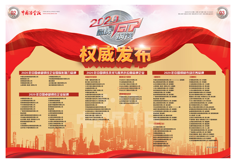 山冶設(shè)計(jì)喜獲“2020年中國(guó)鋼鐵技術(shù)與服務(wù)供應(yīng)商品牌企業(yè)”