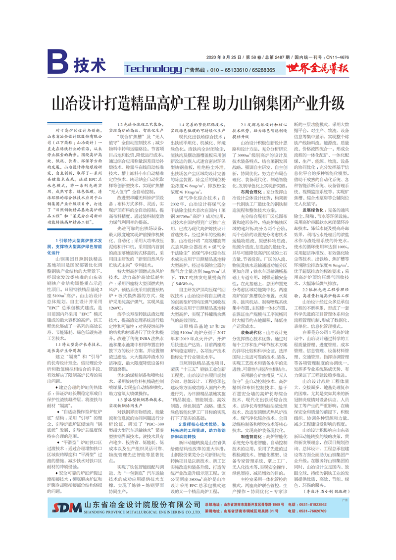 山冶設(shè)計(jì)打造精品高爐工程 助力山鋼集團(tuán)產(chǎn)業(yè)升級(jí)